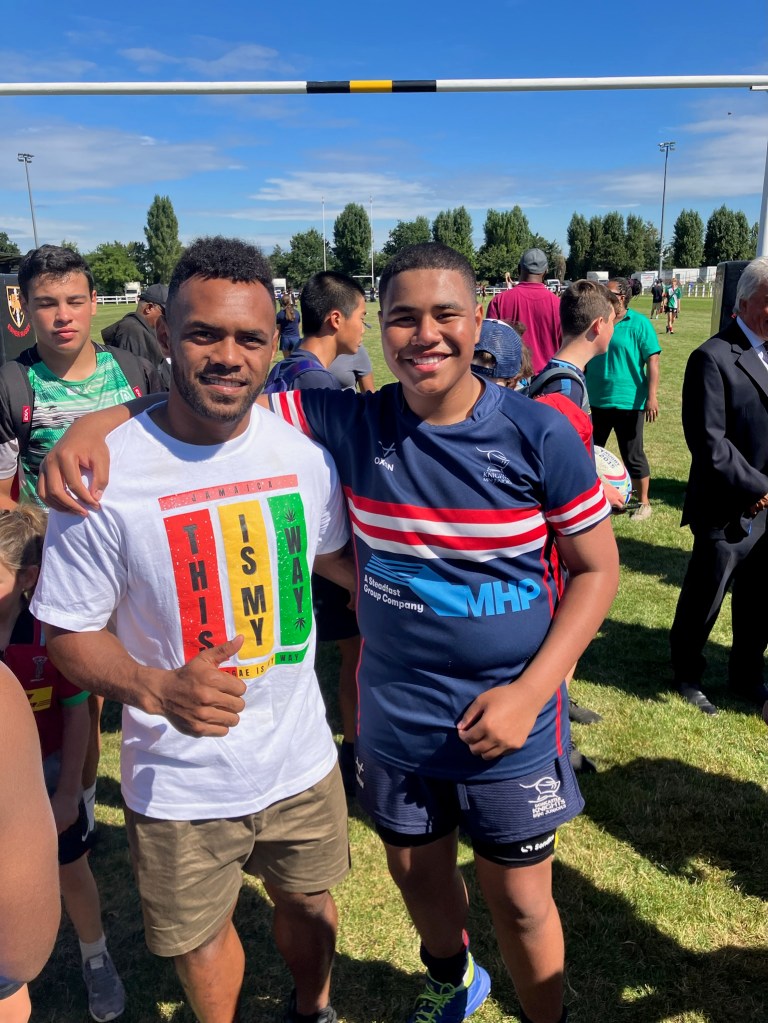 Tu Luke taking advantage of the day by taking a pic with Jone Koroiduadua, Flying Fijian Squad to the Rugby World Cup 2023.